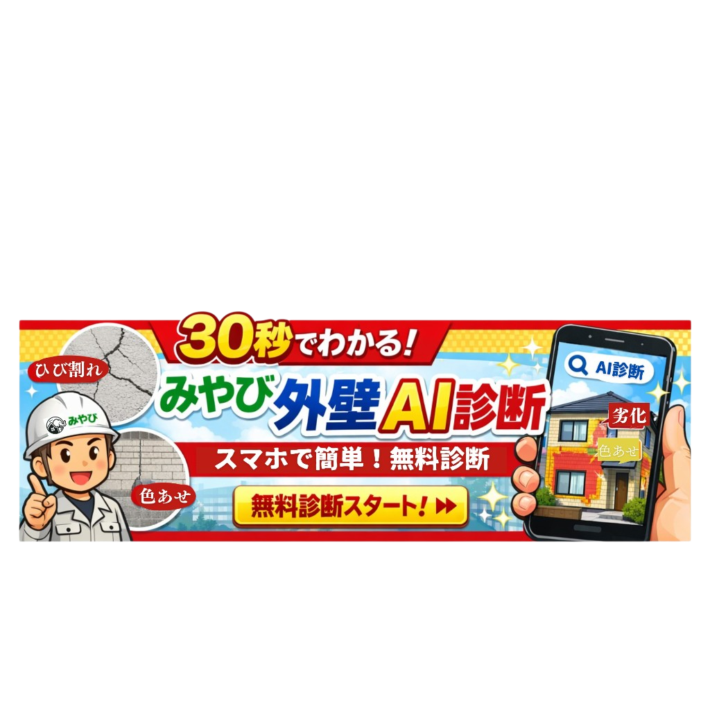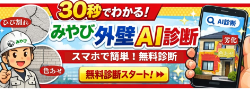 「こちらのサービスは、お住まいの外壁の状態をAIが30秒ほどで簡単にチェックできる無料診断です。
